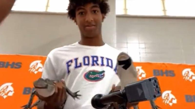 Similarly, in 2014, George Brown Jr. used a dwarf baby caiman to announce his commitment to the University of Florida.