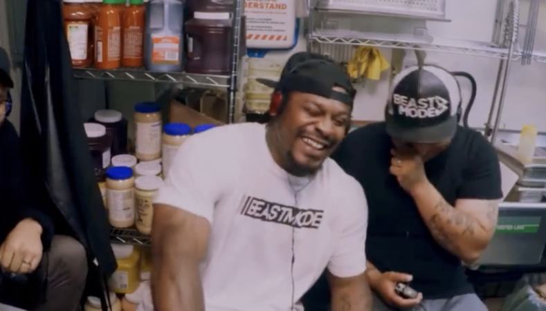 The man with the Beast Mode sandwich gladly went along with the conversation. At one point, the producer asked the man if he’ was “trying to get f**ked up.”