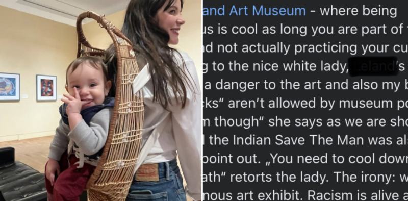 The Portland Art Museum is revisiting its policies after an employee condemned an Indigenous visitor for wearing a traditional woven baby carrier.