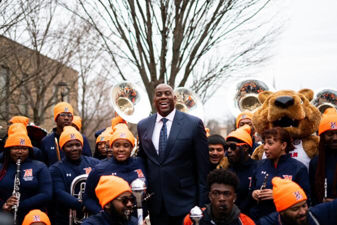 Although the Hall of Famer appeared mainly as a photo op (he danced with the band and posed with fans), the school undoubtedly appreciated Johnson’s presence. He was there as chairman of SodexoMagic, the dining services company providing meals to the university since 2020.