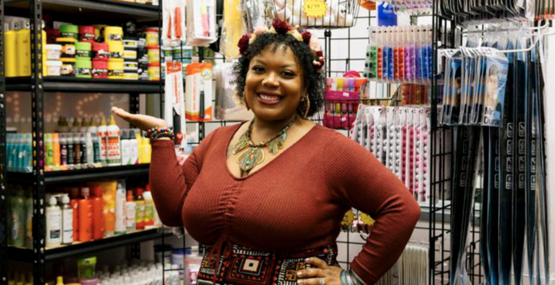 She sells vast options of hair extensions, conditioners, accessories and other products often used by Black women.