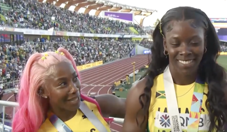 Fraser-Pryce continued to hype Jackson when the two Jamaicans appeared together in a post-race interview. As the new champion expressed her joy during the interview, the 35-year-old mother showered her younger teammate with cheers.