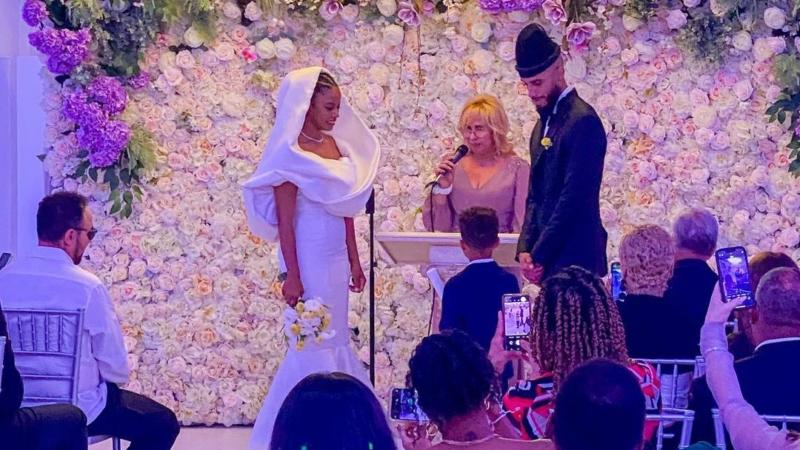 In a beautiful gown with an extravagant neckline, the Zola actress joined her now husband at the altar in front of a host of family and friends.