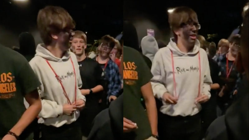 In the video, the teen can be heard explaining to someone else waiting in line that his face paint was meant to be a skull like his friends, but it was “messed up.”