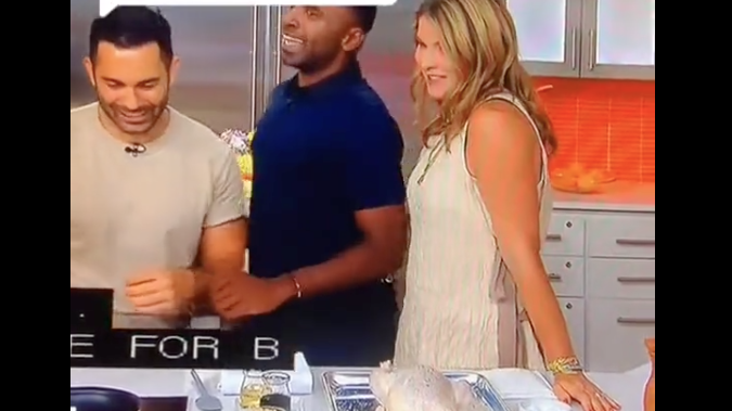 The viral clip shows Hager first leaning on Sylvester and putting her hands on his shoulders. Sylvester then shakes his shoulder, creating some separation between himself and his co-host. Seconds later, as Baraghani continued to give cooking directions, Sylvester subtly pushed Hager to make more room for himself.